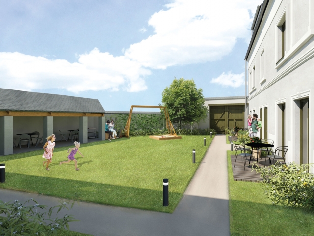 Pro zajištění optimálního komfortu je původní hospodářský dvůr nově uvažován primárně jako pobytová zahrada. Parkování vozidel je pak situováno v návaznosti na nově projednaný vjezd z ulice K Padesátníku v části stávající zahrady, čímž budou vozidla držena mimo pobytový prostor. V případě potřeby je stále zachována možnost pohotovostního parkování vozidel i ve dvorní pobytové části.