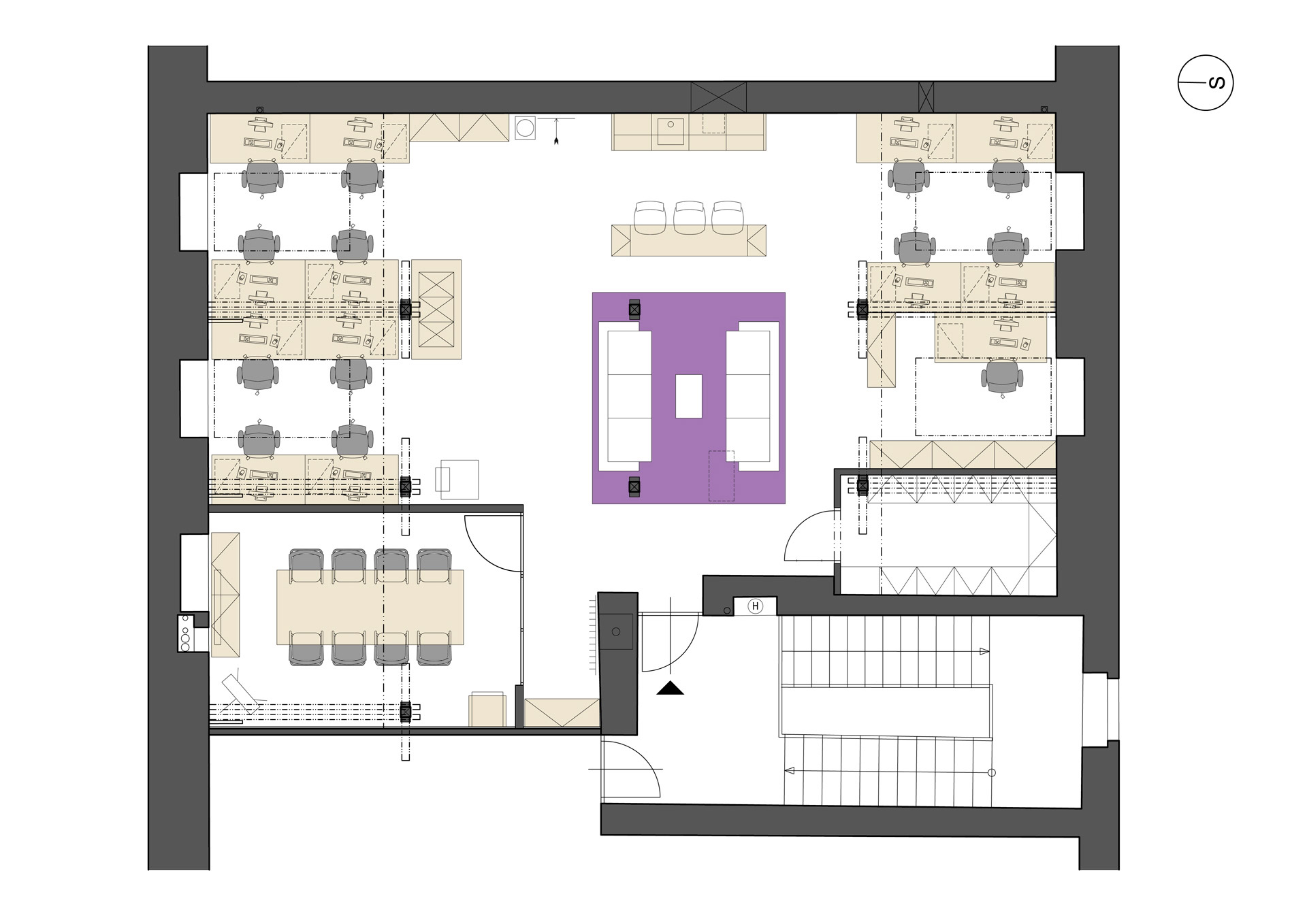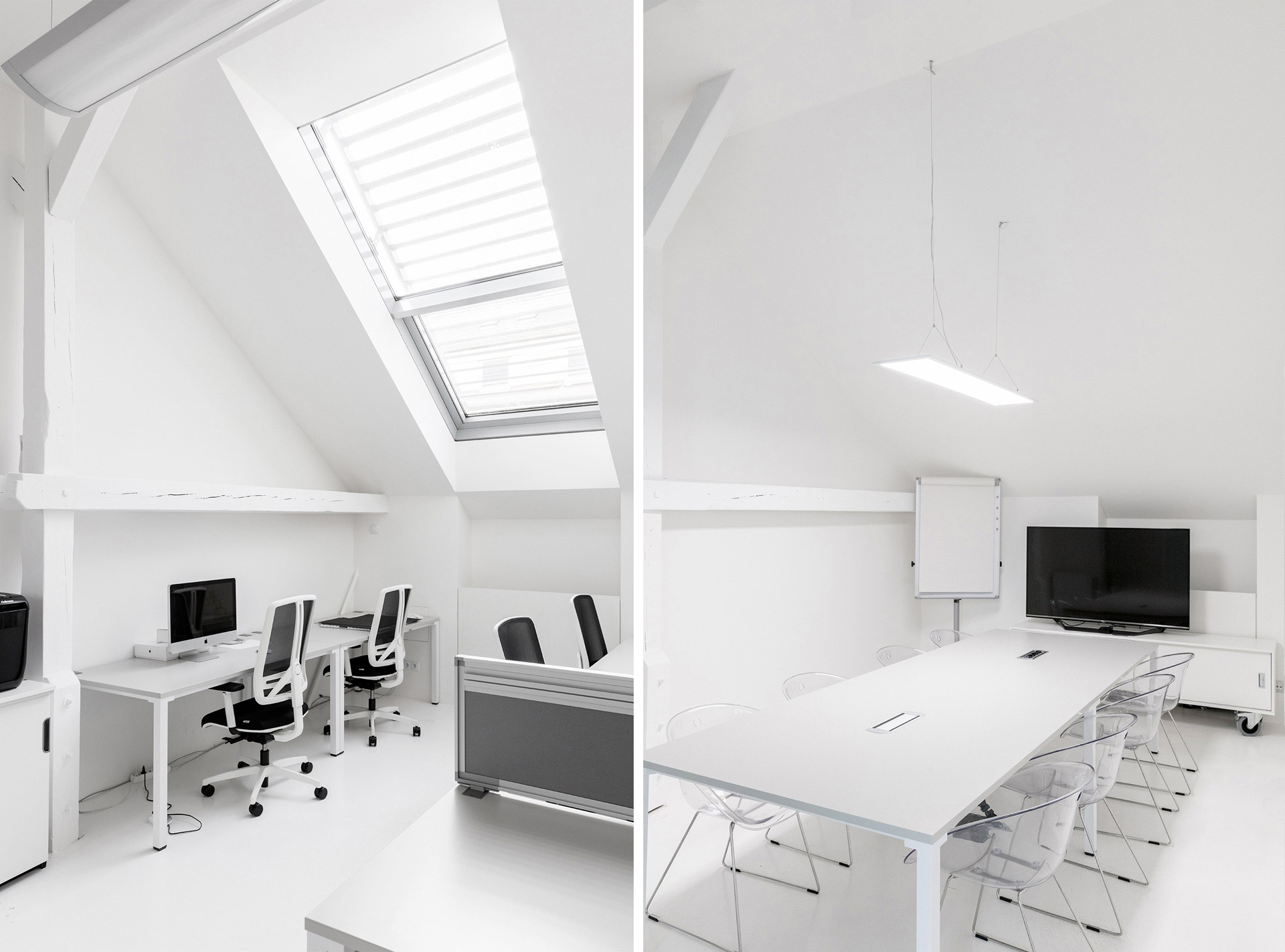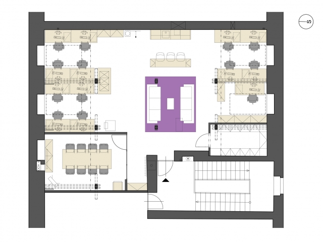 Záměrem návrhu bylo nechat vyniknout originalitu půdního prostoru a zakomponovat do něj všechny potřebné funkce a principy fungování v "open space". Výsledkem je jednoduché a přirozené prostředí. Barevnost interiéru a design jednotlivých prvků nevyčnívá nad samotným celkem, vyjma loga s jeho korporátní fialovou barvou a ukázkami reklamní tvorby, velkoplošně prezentovanými na stěnách. Zbylá část, kde v hlavní roli vystupuje všudypřítomná bílá barva se špetkou šedé a stříbrné, vytváří v interiéru požadovaný svěží pocit jak pro uživatele, tak pro návštěvníky.