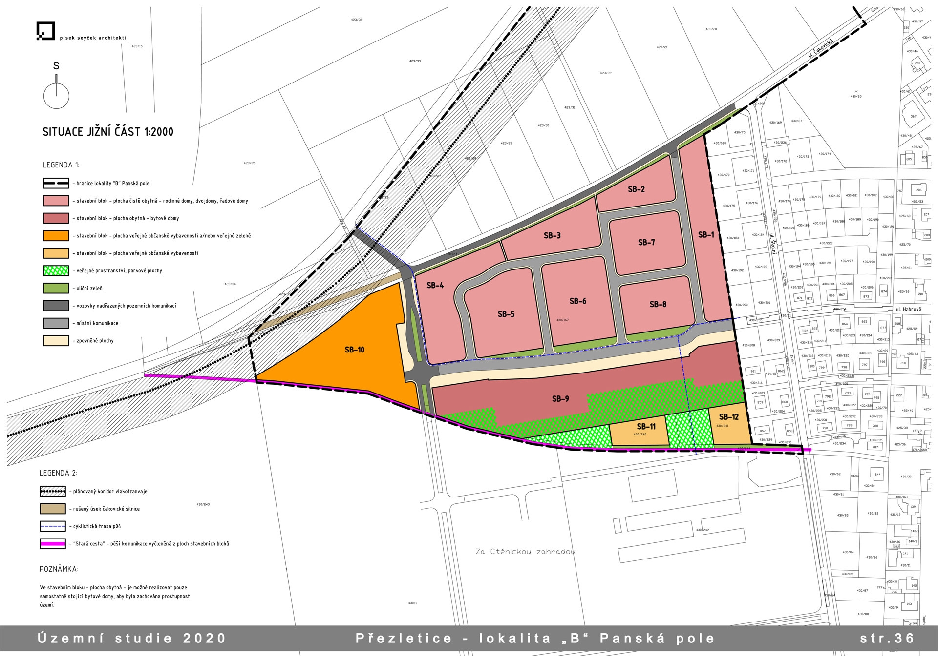Návrh lokality B v jižní části tvoří jednu ucelenou čtvrť. Svým uličním uspořádáním vzdáleně navazuje na sousedící vilovou čtvrť, která byla založena před koncem 19. století jako vysloveně residenční enkláva.