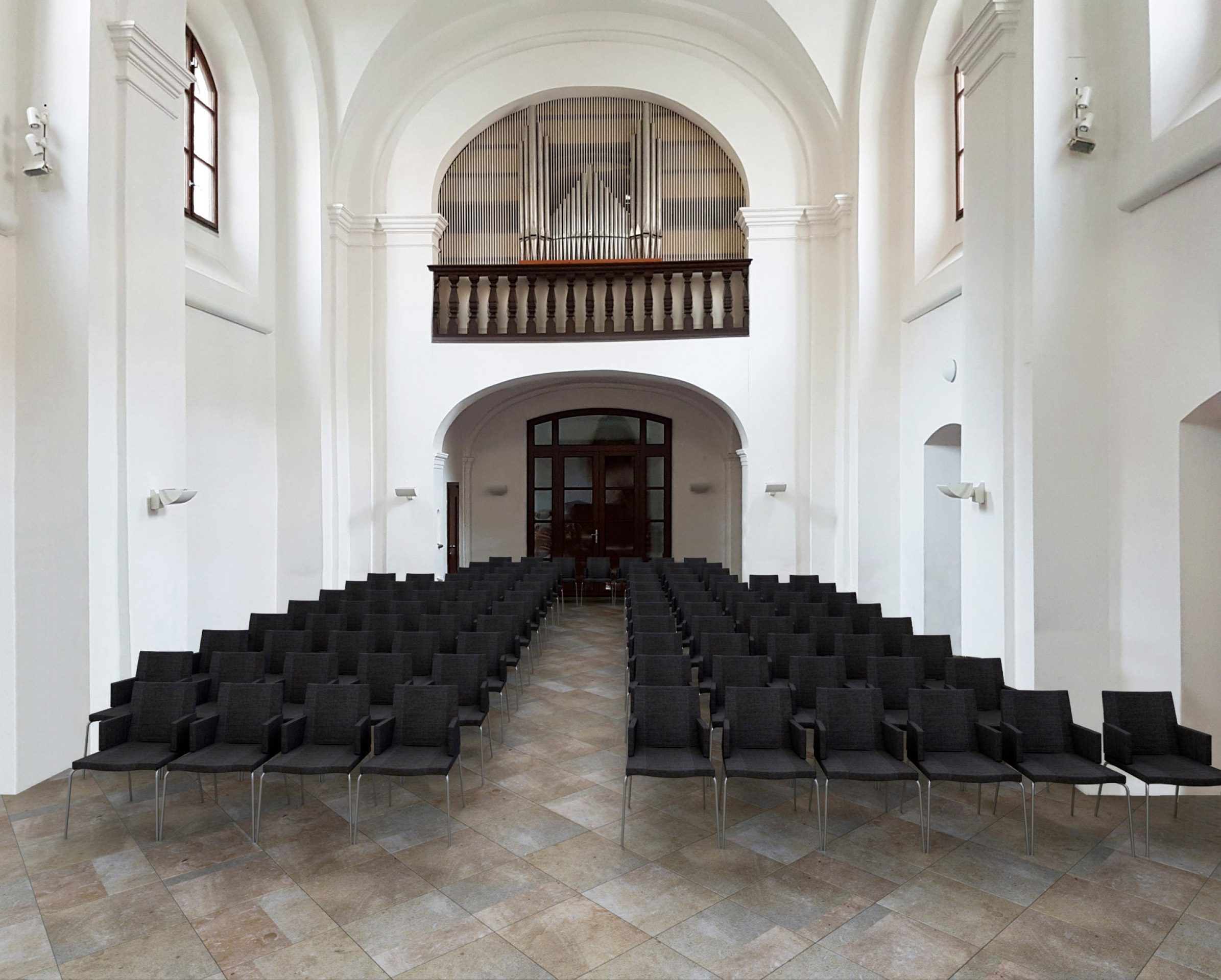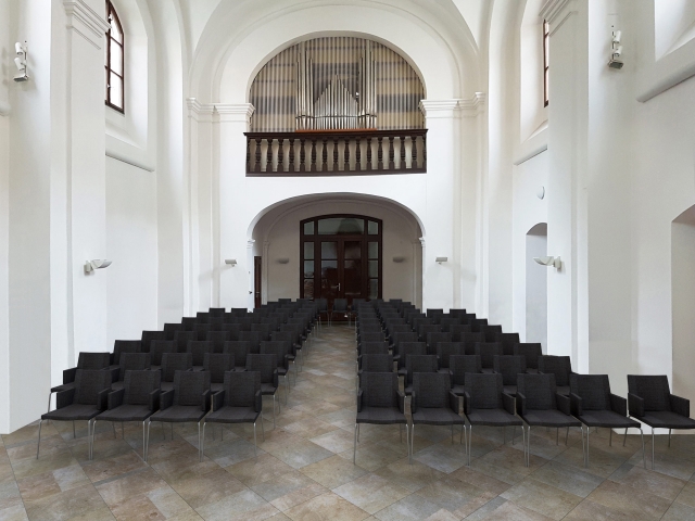 The individual layout and functional arrangement of the structure’s interior has been preserved and no interventions have been carried out in the structure of the church itself. The incongruity of the other spaces is mitigated by the unified concept of all parts of the interior – the flooring, walls, ceiling, furniture, and lighting.